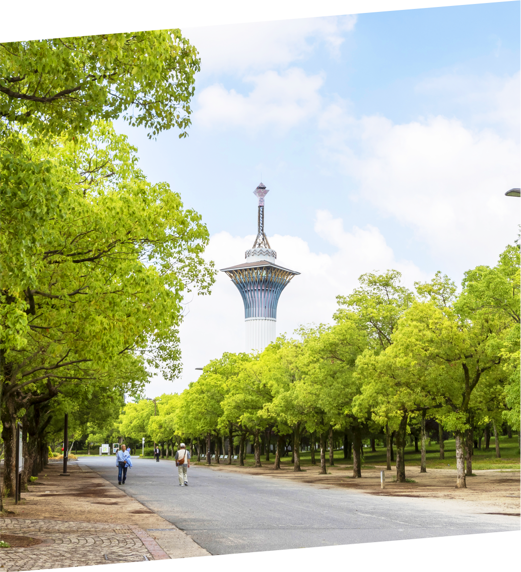 ※掲載の外観完成予想図は、建物外観と花博記念公園鶴見緑地を合成したもので、実際とは異なります。