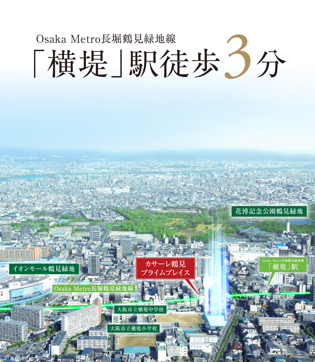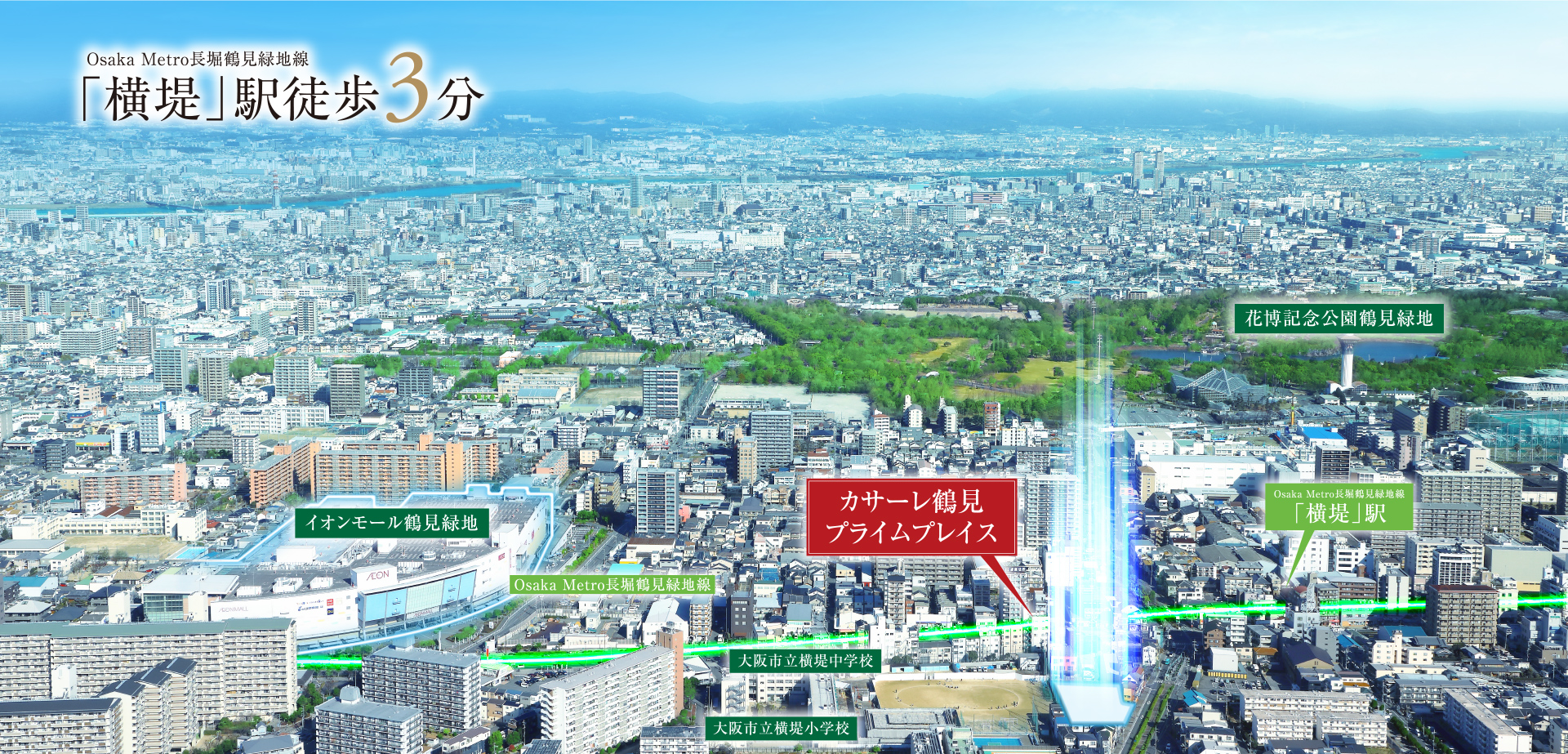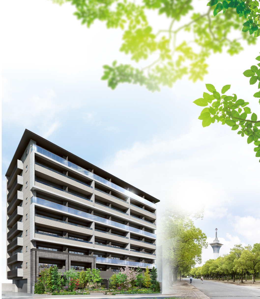 ※掲載の外観完成予想図は、建物外観と花博記念公園鶴見緑地を合成したもので、実際とは異なります。