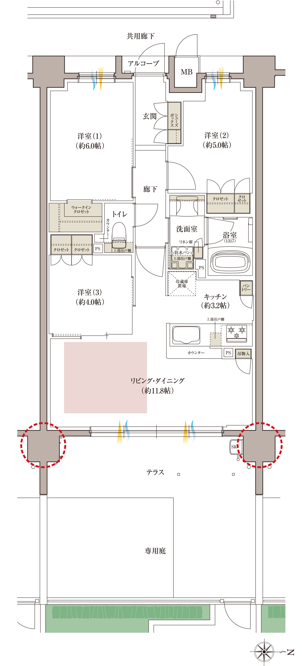 ※1階テラス&専用庭の使用に関しては、詳しくは使用規則をご確認ください。