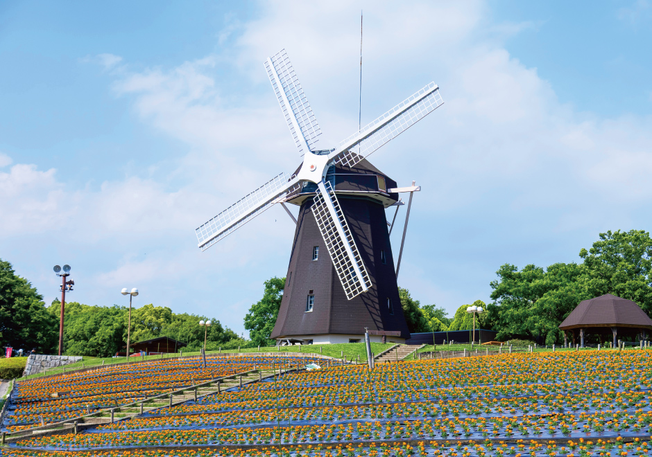 風車の丘を彩る花々や自然観察園で感性を育む一方、