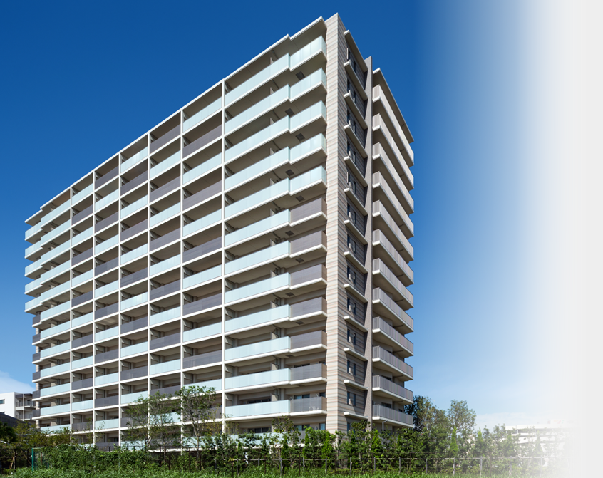 エントランスは、レンガ調タイルを組み合わせたモダンなデザインに豊かな植栽が潤いを添える、都会的なベイサイドエリアをイメージした仕上げ。エントランスホールの動線は、曲面描く壁のモザイクタイルが間接照明に映える、印象的なモダンデザインとしました。朝と夕にエントランスホールを歩くたび、安らぎを覚えていただける空間です。